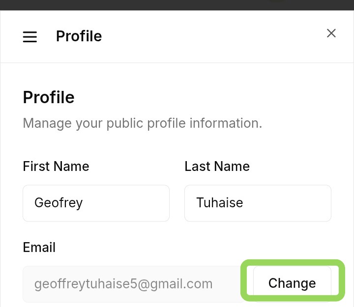 4. Click the “Change” Button Next to Your Email, In the profile window, locate your current email address. Click the “Change” button directly opposite it.