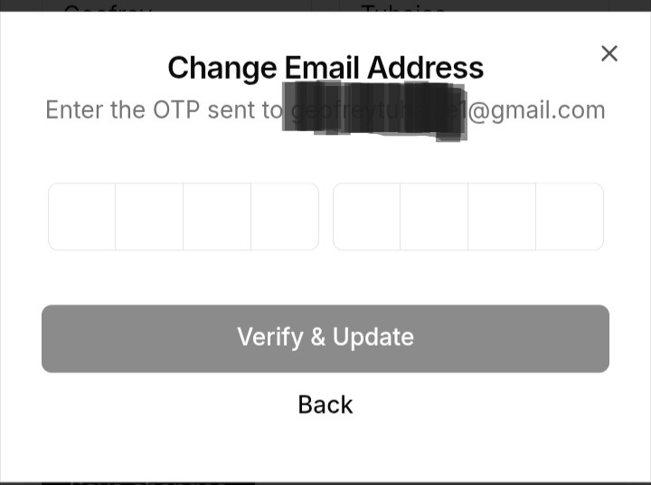 7. Verify the OTP, Open your new email inbox, Locate the OTP message, Enter the OTP into the popup window, If the OTP is wrong or expired, the process resets.