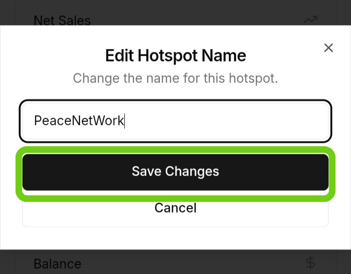 4. Edit in the Popup Window, a popup window will appear. Enter your new hotspot name.