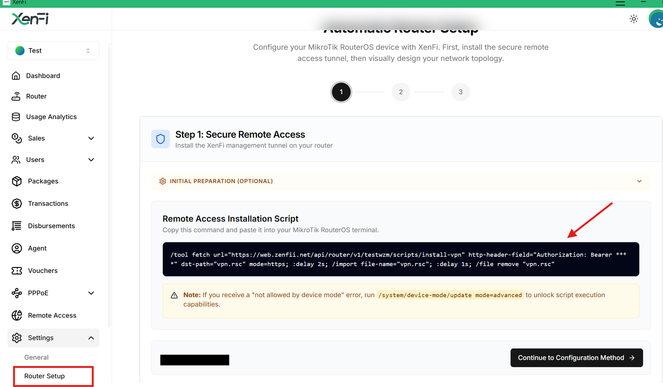 Since your router is already connected to the internet, you can now run the XenFi remote access script.